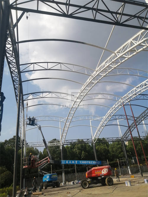 該項(xiàng)目坐落于九江濂溪區(qū)全民健身中心,占地面積約2400平方米,我司從今年5月上旬開始拆除圍網(wǎng),并對(duì)球場進(jìn)行了基礎(chǔ)的挖深工作。7月底,佛蘭空間膜結(jié)構(gòu)有限公司工程項(xiàng)目團(tuán)隊(duì)人員不分晝夜,完成了鋼構(gòu)拼接、鋼構(gòu)吊裝、鋼構(gòu)除銹、膜材吊裝、膜材安裝等一系列操作,歷時(shí)一月余,九江白鹿網(wǎng)球場完美竣工。