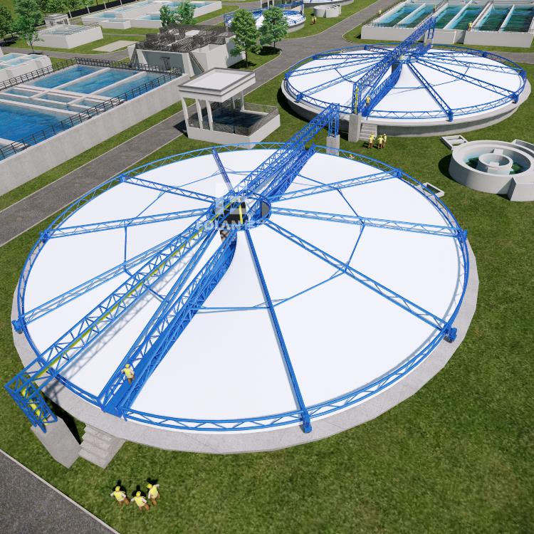 太陽紙業(yè)—老撾隨動(dòng)式污水池加蓋項(xiàng)目是深圳市佛蘭空間膜結(jié)構(gòu)有限公司在國外的一個(gè)重要項(xiàng)目,該污水池加蓋項(xiàng)目直徑50米,鋼用量70噸左右,單體面積1962.5平方米。