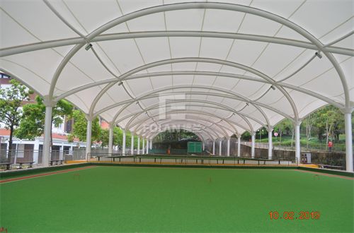 因為膜結(jié)構(gòu)建筑不僅具備良好的防水性能,造型還自由豐富,跨度大,施工快,兼顧安全性與經(jīng)濟性,所以它在體育設(shè)施的應(yīng)用相當廣泛,深圳市佛蘭空間膜結(jié)構(gòu)有限公司已在全國各地完成數(shù)十項體育場看臺、網(wǎng)球場、籃球場、門球場等膜結(jié)構(gòu)工程,完全有實力勝任江西門球場項目的建造。