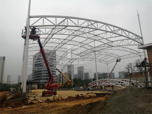 該項目坐落于九江向陽生態(tài)公園平坦處,占地面積約4268平方米,我司從今年3月中旬開始動工,經(jīng)過深圳市佛蘭空間膜結(jié)構(gòu)有限公司工程項目團隊人員的持續(xù)施工,歷時四個多月,九江膜結(jié)構(gòu)風雨門球場終于竣工并獲得了甲方的高度贊譽。