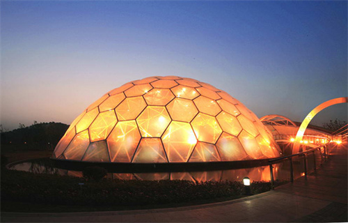 膜結(jié)構(gòu)建筑,以其現(xiàn)代、飄逸的特點(diǎn)越來越受廣大民眾的認(rèn)可,除了造型獨(dú)特,美觀耐用,膜材特有的透光性也使膜結(jié)構(gòu)建筑夜景美輪美奐。