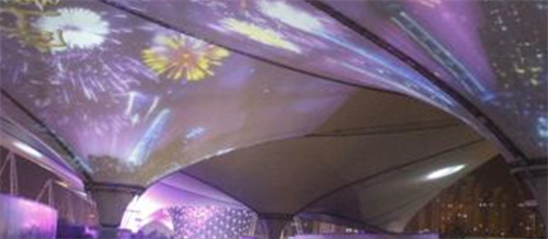 還有一種方式是利用投影儀、激光燈等,將圖案、公司LOGO、影片等投射到白色膜布上,使之成為巨大的屏幕,從而達(dá)到娛樂及宣傳的效果。