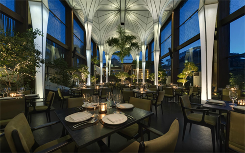 提及吃,必然會想到餐廳,而膜結(jié)構(gòu)憑其藝術(shù)性、經(jīng)濟性、透光性、大跨度、自潔性、工期短等特點,在餐廳領(lǐng)域已有廣泛運用,比如餐廳門頭膜結(jié)構(gòu),餐廳內(nèi)飾膜結(jié)構(gòu),餐廳屋頂膜結(jié)構(gòu),餐廳外立面膜結(jié)構(gòu)及餐廳遮陽棚等,接下來佛蘭空間將結(jié)合案例帶您慢慢欣賞膜結(jié)構(gòu)的魅力。