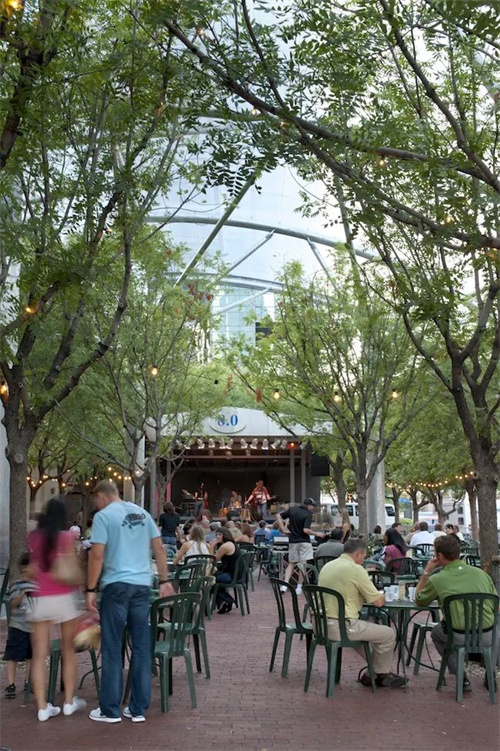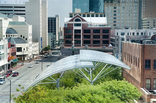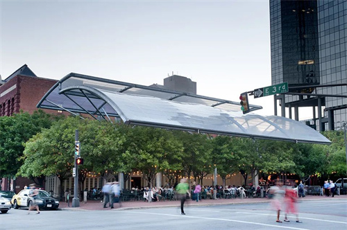 FlyingSaucer飛碟餐廳是德克薩斯州沃思堡市中心最繁忙的餐廳和酒吧。它有一個大型戶外用餐庭院,這個戶外區(qū)域種植了20多棵成熟的樹木,可德克薩斯州陽光猛烈,受保護的樹木無法為顧客提供足夠的庇護。