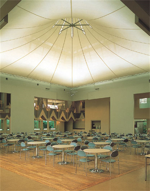 最后分享膜結(jié)構(gòu)在餐廳吊頂?shù)倪\用。