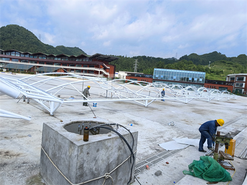 從設(shè)計圖深化-備料-鋼結(jié)構(gòu)除銹上底漆-放樣-板件激光加工-號料-組合焊接-試裝-校核尺寸-整體焊接-中間漆及面漆-吊裝-加焊與油漆修補,再到膜的制作安裝:復(fù)測尺寸-繪制裁剪圖-膜材裁剪-膜片熱合制作-打包-運輸-現(xiàn)場膜面展開-膜吊裝-膜安裝。一道道施工程序,你們兢兢業(yè)業(yè),配合默契,利用鋼結(jié)構(gòu)和膜材,建造了一個個曲線優(yōu)美造型獨特的膜結(jié)構(gòu)建筑。