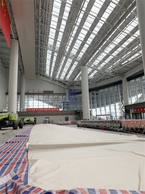 虎門高鐵站這塊100米長的PTFE軟膜吊裝,堪稱國內(nèi)首次100米長跨度軟膜吊裝工程,這也是佛蘭空間首次完成這么長跨度的軟膜吊頂安裝工程。