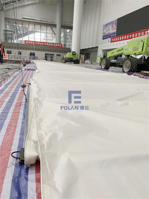 近期,佛蘭空間正在施工的虎門高鐵站精裝修室內(nèi)天花吊頂就運用了PTFE軟膜。