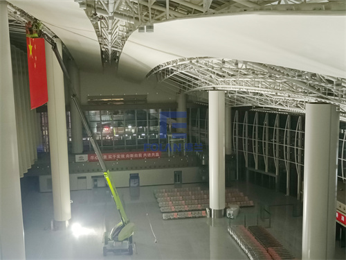 首先,100米長PTFE軟膜室內(nèi)吊頂需要精密的結構設計,需采用合理的支撐結構和連接方式,才能防止結構松動或者變形等問題。