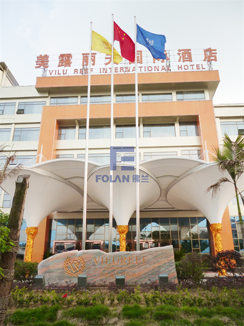 膜結(jié)構(gòu),憑其輕盈的結(jié)構(gòu),獨特的造型,已廣泛應(yīng)用于酒店建筑中,比如膜結(jié)構(gòu)酒店門頭、膜結(jié)構(gòu)建筑外墻、膜結(jié)構(gòu)屋頂以及膜結(jié)構(gòu)天花吊頂。酒店建筑運用膜結(jié)構(gòu),不僅造型獨特,還能營造明亮、溫馨、別具一格的室內(nèi)環(huán)境。