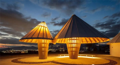 ▲膜結(jié)構(gòu)酒店門頭,佛蘭空間已竣工項目,喇叭花造型,結(jié)構(gòu)輕盈,已成為當(dāng)?shù)氐貥?biāo)性酒店。