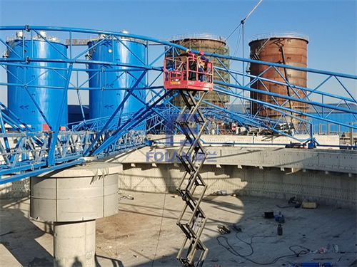 考慮到圓形池能夠依靠周邊傳動推動集氣罩運行,佛蘭空間為其設計了隨動式污水池反吊膜加蓋方案。