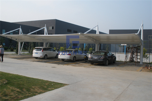 膜結(jié)構(gòu)停車棚,是以建筑織物,即膜材料為張拉主體,與支撐構(gòu)件或拉索共同組成的結(jié)構(gòu)體系。它憑新穎獨特的建筑造型,良好的受力特點,已成為大跨度空間結(jié)構(gòu)的主要形式之一。