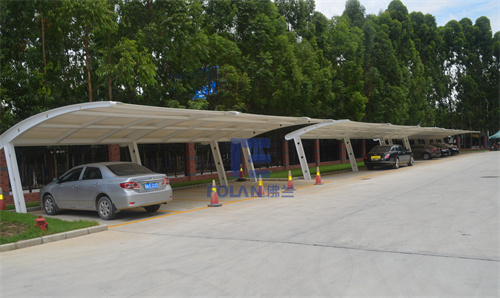 膜結(jié)構(gòu)停車棚,采用強度高、耐久性好、自潔性好、透光率高、熱吸收量小的膜材,既能防止愛車被日曬雨淋,還能保持愛車的潔凈美觀。