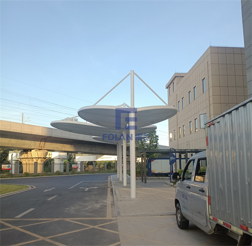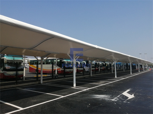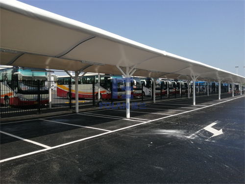為養(yǎng)護集團大巴車,也為給員工提供一個可遮陽擋雨的上下車場地,深圳北行車公寓興建了一個膜結(jié)構(gòu)停車棚。
