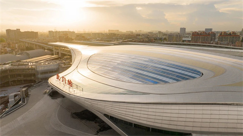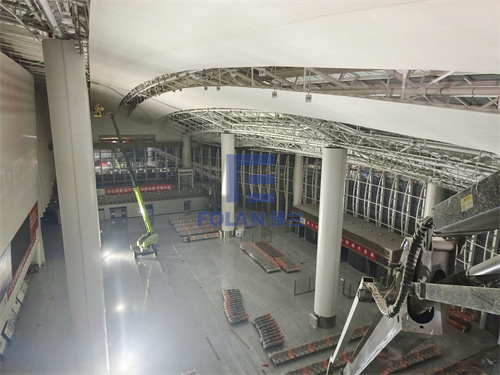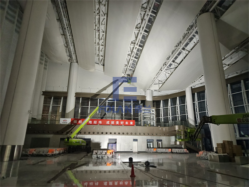 該工程位于東莞市虎門鎮(zhèn)白沙村,是東莞唯一的高鐵、城際、地鐵三軌合一的交通樞紐,被定位為“東莞新地標,灣區(qū)新門戶”。項目由中鐵參與建設,佛蘭空間膜結構負責其南北站房的室內軟膜天花吊頂安裝工程。
