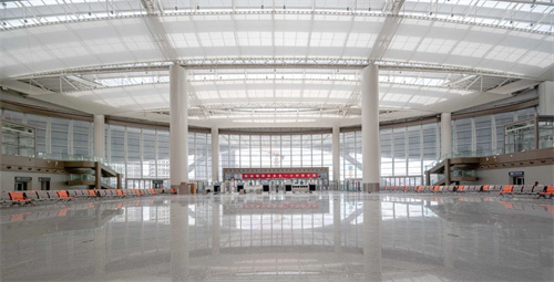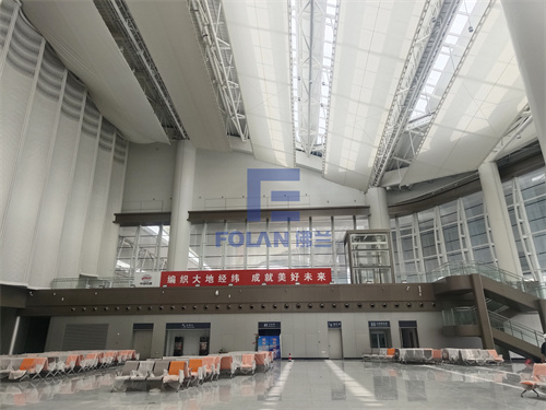 日前,虎門站新建南站房已投入使用,候車大廳寬敞大氣、潔凈美觀。佛蘭空間在安裝室內軟膜天花吊頂時,使用了A級防火PTFE軟膜,既能防止陽光暴曬,又兼顧室內采光,給旅客營造不眩暈的舒適空間。