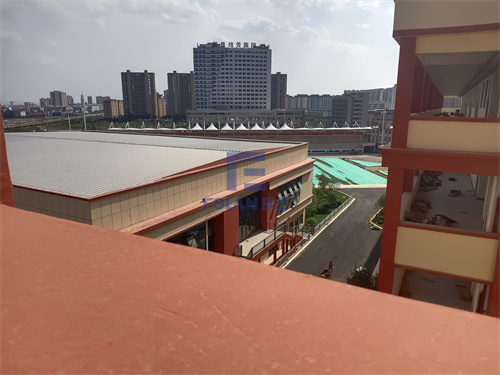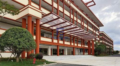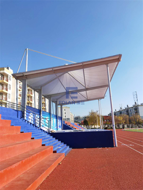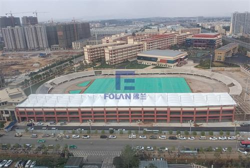 根據(jù)校方需求,佛蘭空間結(jié)合新校區(qū)已有建筑元素,精心設(shè)計(jì)了學(xué)校體育看臺(tái)、長(zhǎng)廊,門頭等9處膜結(jié)構(gòu)建筑。