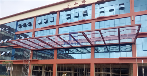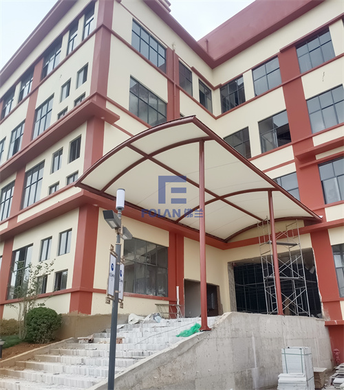 除了音體館門頭,該校報(bào)告廳2側(cè)及會(huì)堂后側(cè)出口也建造了膜結(jié)構(gòu)門頭。