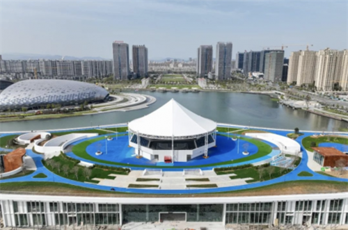 亞運(yùn)會(huì)三人制籃球賽將在這里舉行,這也是全世界首個(gè)固定的三人籃球場館,頂部運(yùn)用鋼膜結(jié)構(gòu)蓋頂。