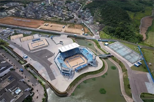 寧波半邊山沙灘排球中心為亞運(yùn)會(huì)沙灘排球比賽場地及訓(xùn)練場地,位于寧波市象山縣半邊山景區(qū)內(nèi),占地面積約6.4萬方,含比賽場地2片,熱身場地2片,訓(xùn)練場地3片,大約可容納3000名觀眾觀賽,觀賽區(qū)有一處顯眼的白色膜結(jié)構(gòu)看臺(tái)。
