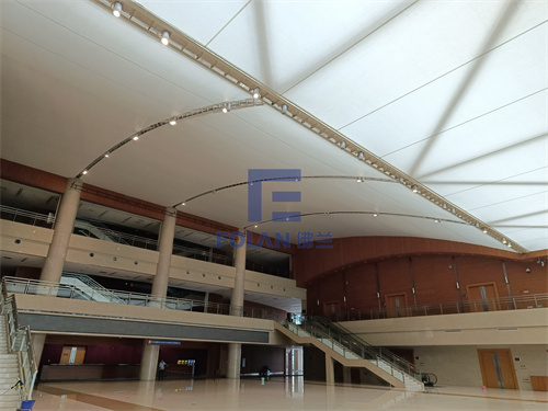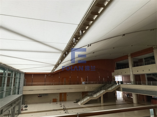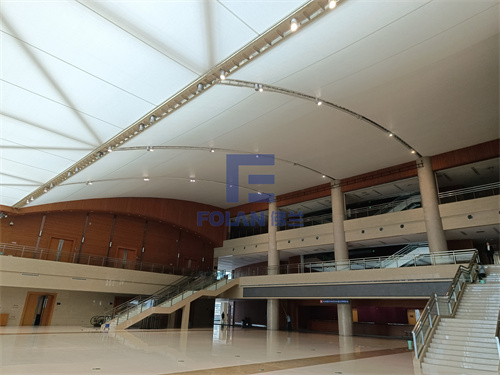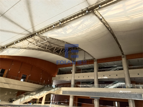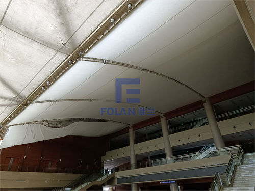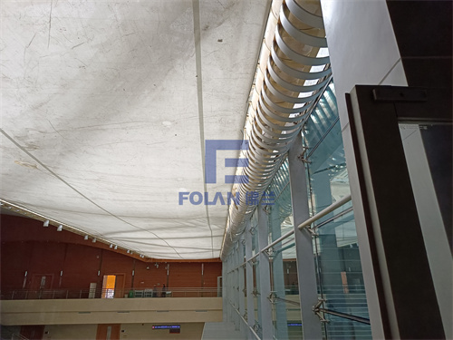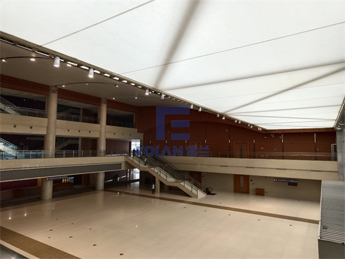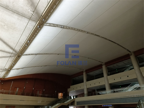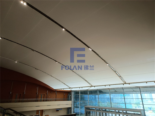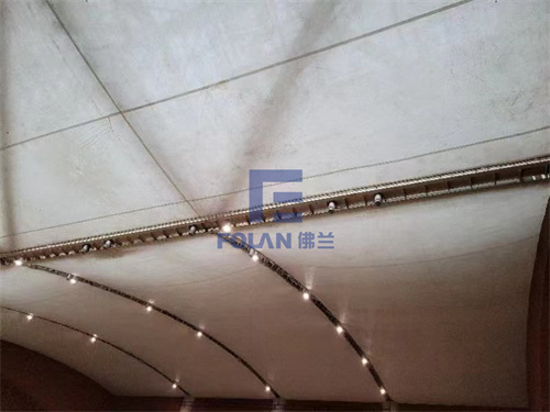 考慮到會議中心的吸音性與自潔性,在重新更換膜材時,佛蘭公司采用了PTFE內(nèi)膜。PTFE內(nèi)膜有著更舒適的光學(xué)性能及更好的自潔性、吸音性和安全性,既能營造舒適明亮的會議中心室內(nèi)環(huán)境,還能起到美化和提升室內(nèi)逼格的作用!