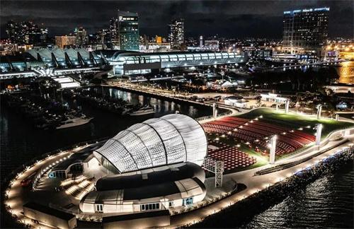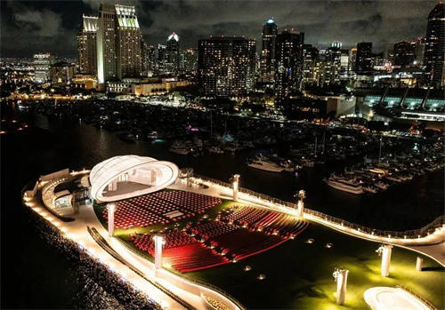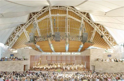 與傳統(tǒng)的音樂會場地不同,坐落于美國西海岸的雷迪貝殼音樂劇場在建筑和聲學(xué)設(shè)計上實現(xiàn)了高度創(chuàng)新。戶外舞臺外表形似貝殼,一律以白色的張拉膜結(jié)構(gòu)所鋪蓋,遠(yuǎn)遠(yuǎn)望去整個舞臺宛如白帆競發(fā),巍然屹立,典雅靜謐。