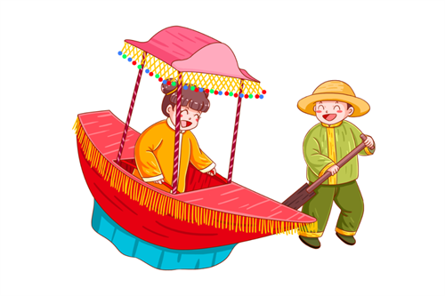 劃旱船,民間傳說是為了紀(jì)念治水有功的大禹的。旱船不是真船,多用兩片薄板,鋸成船形,以竹木扎成,再蒙以彩布,套系在姑娘的腰間,如同坐于船中一樣,手里拿著槳,做劃行的姿勢,一面跑,一面唱些地方小調(diào),邊歌邊舞,這就是劃旱船。