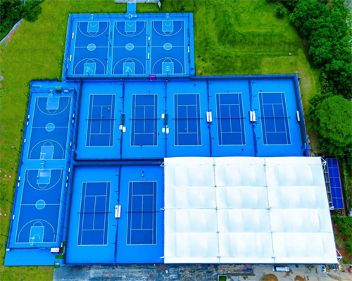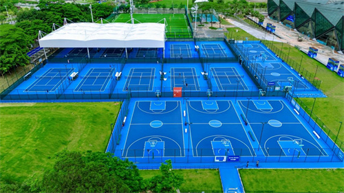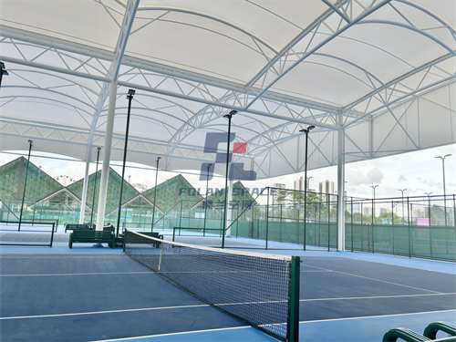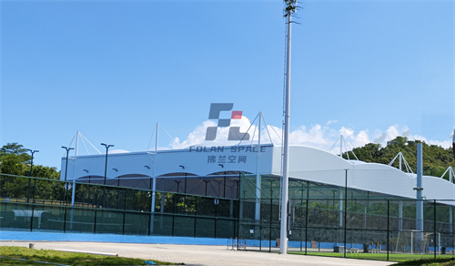 該三片風(fēng)雨棚場地,由深圳市佛蘭空間膜結(jié)構(gòu)有限公司設(shè)計建造完成,高穹頂設(shè)計與流線,暢享風(fēng)雨無阻的網(wǎng)球體驗!該網(wǎng)球場已于2024年7月1日起正式開放線上預(yù)定,實景美圖先讓大家一睹為快!