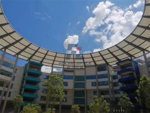 該學(xué)校天幕使用的是PVDF高透光膜材,無論白天還是夜晚,都可以透過它看到天空,是名副其實的天幕。這種高透光性使得天幕在白天能夠提供充足的自然光照,而在夜晚則可以與燈光結(jié)合,營造出絢麗的視覺效果。