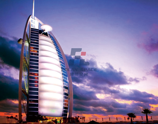是一個帆船形的塔狀建筑,56層,高321米。采用雙層PTFE膜結(jié)構(gòu)建筑形式,造型輕盈、飄逸,具有很強的膜結(jié)構(gòu)特點及現(xiàn)代風格。