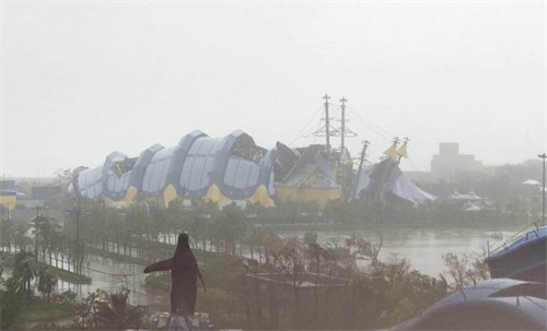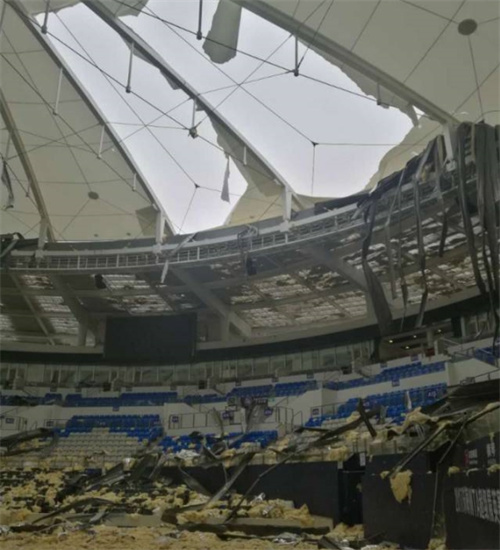 其實受臺風(fēng)暴雨影響的不僅是人員、房屋、道路、地鐵、商場、樹木等,還有膜結(jié)構(gòu)建筑。受臺風(fēng)暴雨影響,有些膜結(jié)構(gòu)建筑被臺風(fēng)撕裂掀翻,有些膜結(jié)構(gòu)屋面嚴重積水。
