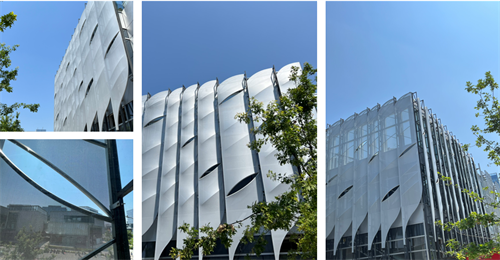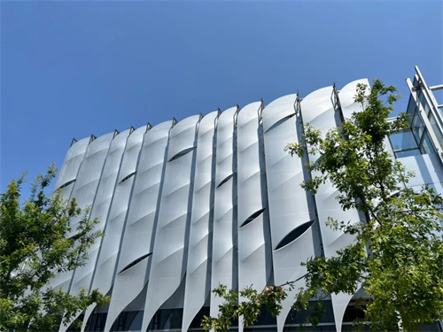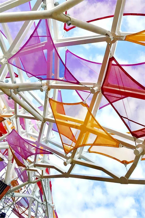 網(wǎng)格膜因其特殊的結(jié)構(gòu)和開孔率,能夠?qū)崿F(xiàn)不同程度的透光效果,其材質(zhì)和顏色也可根據(jù)實際需求進行選擇,從而實現(xiàn)個性化的景觀設(shè)計。因此,網(wǎng)格膜在景觀領(lǐng)域也有廣泛運用,可遮陽,可塑造當(dāng)?shù)鼐坝^。