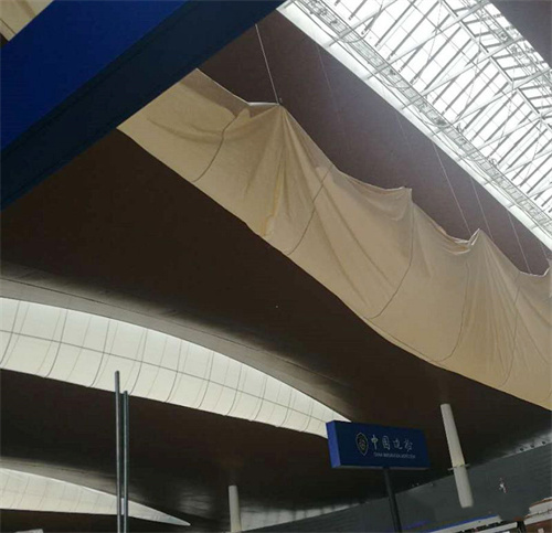 為營造一個陰涼的室內(nèi)環(huán)境,港珠澳大橋安檢大廳,運用PTFE網(wǎng)格膜弱化太陽直射,起到遮陰效果。