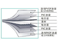 在PVDF涂層上添加了特殊的改性助劑,既提高了膜材的自潔性能又能直接焊接,同時,改性助劑與PVC層內(nèi)添加劑協(xié)同作用,使PVDF與PVC涂層的結(jié)合更加牢固,不易剝離,不再需要涂覆底料層。