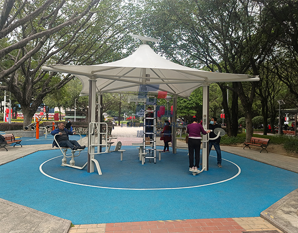 此案例關(guān)鍵詞:傘膜、景觀膜、PVDF膜,健身器材膜蓋頂