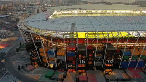 教育城球場外立面設(shè)計(jì)為復(fù)雜的鉆石形幾何圖案,融合了伊斯蘭建筑傳統(tǒng)風(fēng)格和現(xiàn)代理念,有“沙漠鉆石”的別稱。世界杯期間,974球場將舉辦7場比賽。
