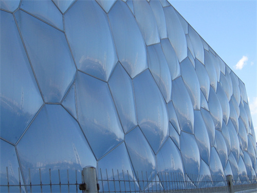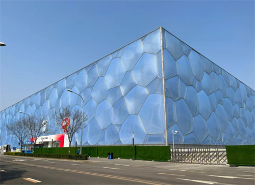 水立方的幕墻由3800多個ETFE(四氟乙烯)氣枕組成,共有11種不同的形狀,氣枕上布滿了肉眼看不見的鍍點(diǎn),其原材料是一種耐高溫的油墨。