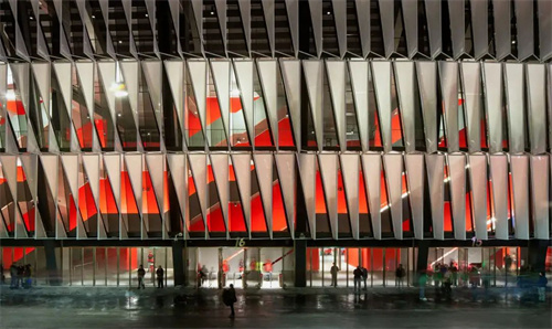 約300個停車位通過單層ETFE系統(tǒng)保護(hù)車輛免受環(huán)境影響,同時讓日光進(jìn)入,在夜間又能照亮立面。