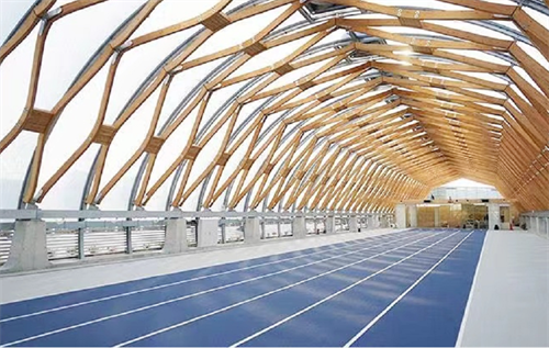 新豐洲跑步館是日本第一家使用ETFE薄膜的體育場館,與其搭配的結(jié)構(gòu)支撐材料除了常用的合金框架外,還使用了松木框架。這使得整個建筑有更親人的感官體驗,同時還提高建筑的輕盈感。