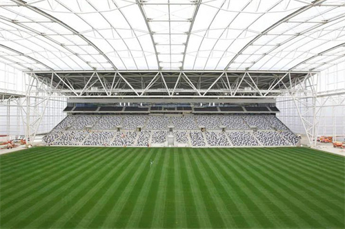 ETFE頂篷和立面包括一個專門的電纜桁架系統(tǒng)和3種不同的ETFE打印圖案,體育場包括12650個固定座位,可擴(kuò)展到近25000個。