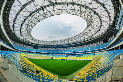該體育場外觀采用的ETFE氣枕超10萬平米,是目前世界上僅次于北京水立方膜結(jié)構(gòu)面積的大型單體建筑。