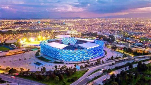 夸烏特莫克體育場,墨西哥第四大足球場。體育場作為墨西哥紡織設(shè)計和運動建筑領(lǐng)域的創(chuàng)新,是拉丁美洲第一個也是唯一一個外墻完全被ETFE覆蓋的體育場。