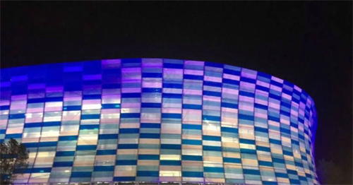 體育場ETFE立面的弧形外觀極為輕巧,融合了前哥倫布時期的設(shè)計元素和馬賽克特征。它由124個垂直段組成,高度約40米。在這三個陰影中,共有5952塊ETFE薄膜。在白天,藍(lán)色和白色以及透明部分的球桿顏色清晰可見。到了晚上,ETFE立面會被LED燈以各種顏色照亮,熠熠生輝。
