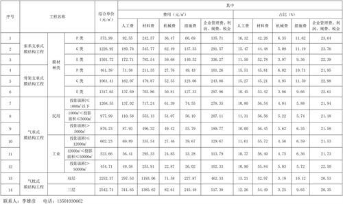 四、關(guān)于材料價格,本指標(biāo)中G類、P類膜材及其他材料均考慮為國產(chǎn)合格產(chǎn)品,而E類膜材則按進(jìn)口合格產(chǎn)品考慮。